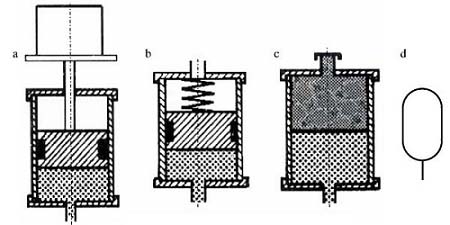 a. Bình tích năng trọng vật b. bình tích năng lò xo c. Bình tích năng thủy lực d. Ký hiệu
