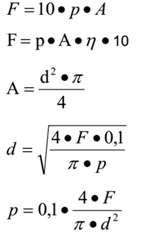 + F = Lực đẩy (hoặc kéo) do piston xi lanh tạo ra [N];