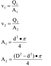 + Q1,2 = Lưu lượng của dòng chảy [cm3/s, dm3/s, m3/s];