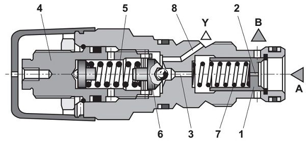 Hình 5.2. Kết cấu van an toàn kiểu tác động trực tiếp kiểu của Rexroth