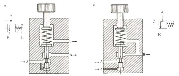 Van được sự dụng trong trường hợp khi có yêu cầu mở, đóng nối tiếp hai dòng chất lỏng áp suất mà quá trình mở, đóng một dòng được thực hiện nhờ tín hiệu áp suất của dòng kia (hình 5.12a) hoặc áp suất từ nguồn khác qua cửa Z (hình 5.12b). Chức năng làm việc của van đóng mở nối tiếp gần giống với van an toàn nhưng với áp suất thấp hơn.