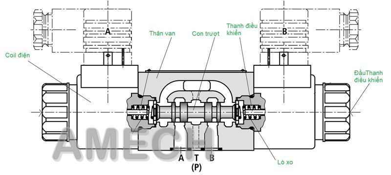 Van phân phối thủy lực được cấu tạo từ nhiều chi tiết cơ khí với độ chính xác cao, mỗi loại van lại có những chi tiết khác nhau nhưng ở đây Amech chỉ giới thiệu cấu tạo hai loại van phổ biến hay dùng nhất.