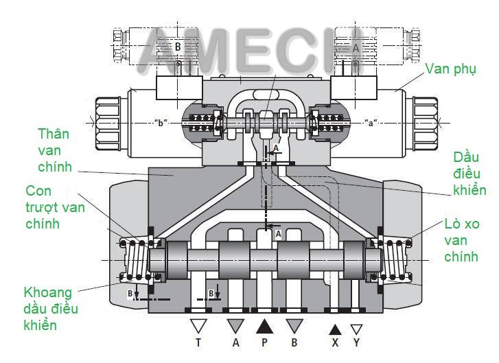 + Van phân phối điện từ điều khiển tỉ lệ - van servo.