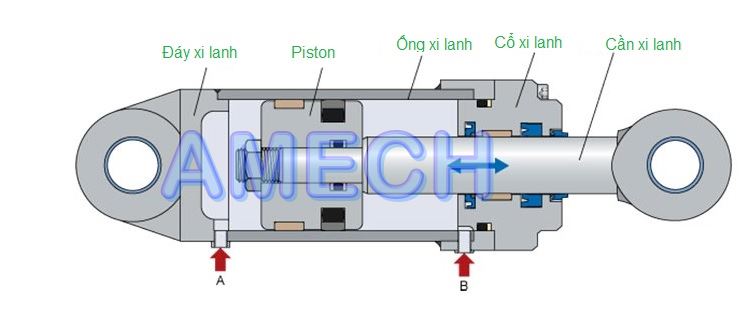 Xi lanh thủy lực là một phần tử trong hệ thống thủy lực, là một thiết bị cơ khí chuyên dụng được điều khiển bởi dòng dầu thủy lực chủ yếu sử dụng trong các ứng dụng tạo chuyển động tịnh tiến (ngoài ra vẫn có xi lanh thủy lực dạng quay). Trong bài viết này AMECH sẽ nói tới kiến thức cơ bản cho các bạn về xi lanh thủy lực loại sử dụng phổ biến là dạng chuyển động thẳng tịnh tiến.